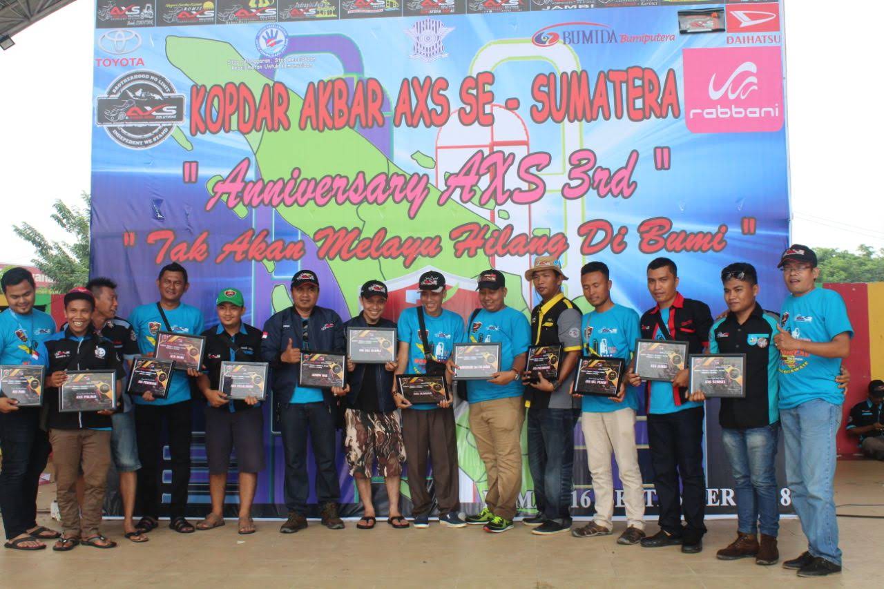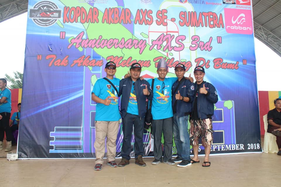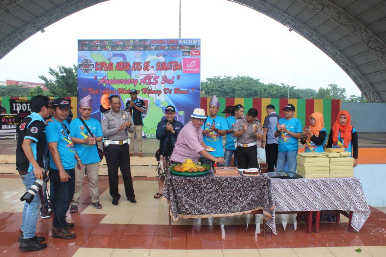 Dumai ( PantauNews ) Kopdar gabungan AXS (Avanza Senia Solusion)sesumatra sekaligus ulang tahun AXS Dumai ke 3 yang di adakan di lapangan Bukit Gelanggang Kota Dumai pada hari Minggu 16/9 /2018.Acara tersebut di buka langsung Wakil walikota Dumai Eko Suharjo.Turut hadir dalam acara tersebut Kasat lantas polres Dumai dan para Faunder AXS nasional Agung Dharma,willy Munandar,dan Oki Darma serta Abdul Rahmat mewakili Admin nasional.