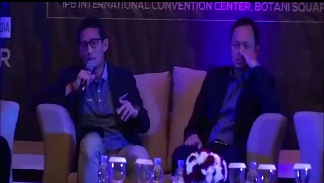 Pengusaha sukses Sandiaga Uno mengatakan, produk lokal harus dikedepankan dimulai dengan memakai produk lokalnya tersendiri, seperti dirinya memakai sepatu lokal hingga bajunya. Karena itu ekonomi harus dibedakan dari politik juga agar bisa direalisasikan penggunaan barang asli Indonesia.