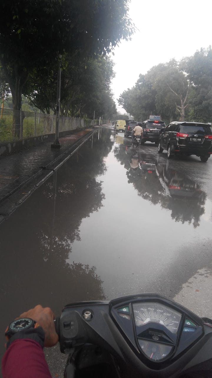 Dikarenakan genangan air hujan yg hampir meluap ke semua jalan itu,