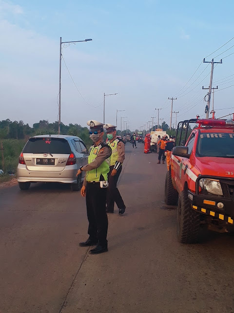 Kerja keras semua pihak dan petugas pemadaman berjibaku memadamkan api pada lahan tersebut. Dimana pada saat kejadian asap sangat banyak sempat menggangu pandangan pengguna jalan raya.