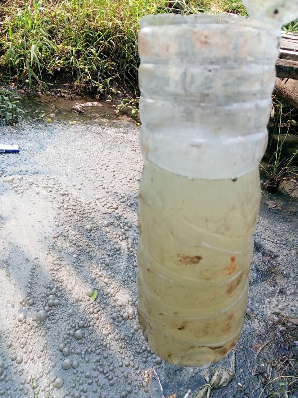 Belum mendapatkan konfirmasi, awak media mencoba mengambil sampel air drainase yang diduga telah tercemar ini, diambil untuk dilakukan investigasi lebih lanjut, Minggu (18/08).