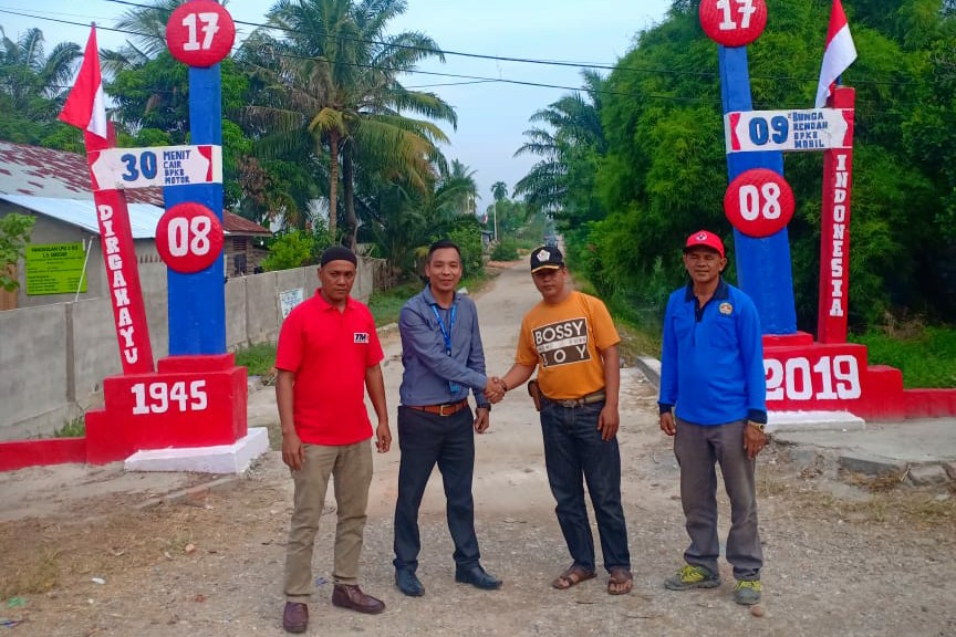 Dumai (PantauNews.co.id) - Peresmian bangunan gapura oleh perusahaan PT. Wahana Ottomitra Multiartha Tbk (WOM Finance) Pada hari Ini Kamis, 15 Agustus 2019 di Jl. Swadaya RT 01, Kelurahan Bukit Batrem, Kecamatan Dumai Timur.
