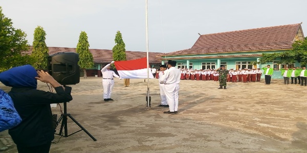 Acara upacara bendera di SDN 027 berjalan dengan aman dan kondusif sampai akhir acara.