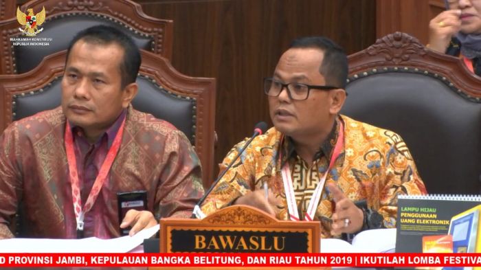 Sedangkan dari Bawaslu, Ketua Bawaslu RI Abhan hadir langsung dalam ruang sidang. Ketua Bawaslu Riau Rusidi Rusdan bertindak sebagai juru bicara memberi keterangan di dampingi anggota Gema Wahyu Adinata dan Amiruddin Sijaya.