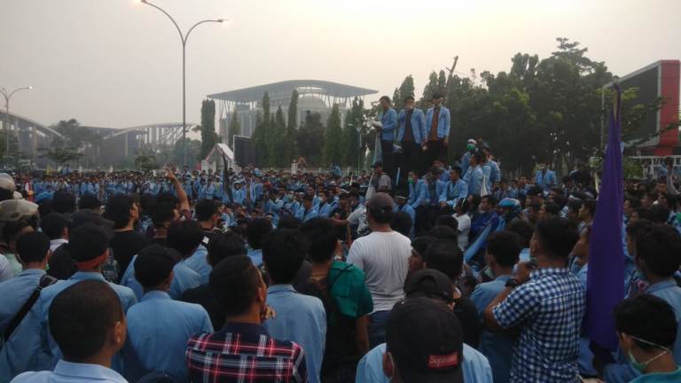 Pekanbaru (Pantaunews.co.id) - Beberapa perguruan tinggi di Riau yang tergabung dalam Gerakan 17 September melakukan demonstrasi di depan Mapolda Riau, ribuan massa gabungan mahasiswa riau ini akhirnya membubarkan diri selepas Maghrib, Selasa (17/09/19). Namun sebelum membubarkan diri, massa berjanji akan kembali melakukan demo jika kabut asap masih ada meracuni udara di Riau.