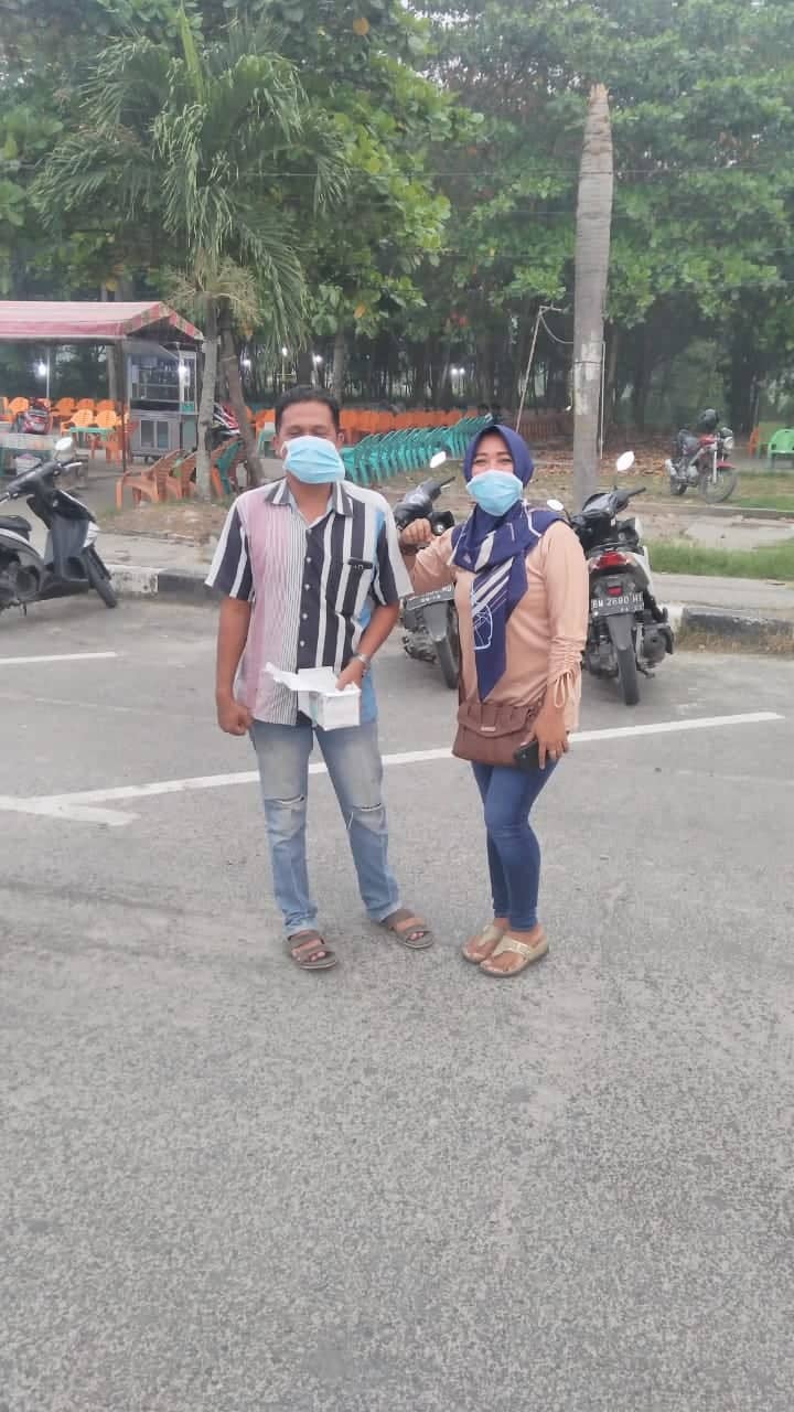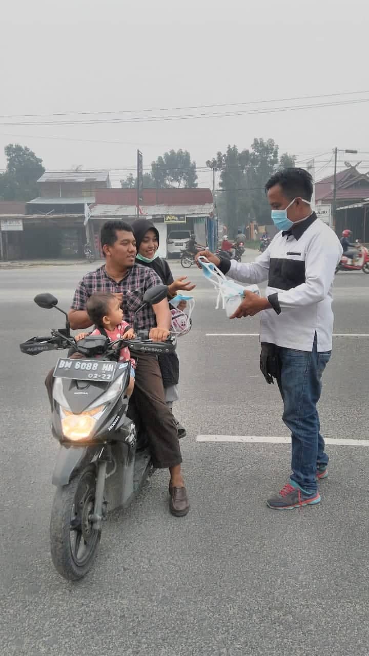 Prihatin Kondisi Kabut Asap, Pedagang Kuliner Bukit Gelanggang dan Masyarakat Tempat Ikut Membagi-bagikan Masker