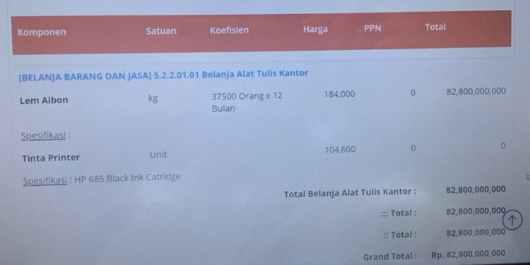 "Alat laboratorium yang (sebelumnya ditulis) sekitar Rp 132 miliar, hanya Rp 1,3 miliar saja. ATK, di situ ada Aibon disampaikan Rp 82 miliar, ATK itu seluruh sekolah hanya Rp 22 miliar," sambungnya.