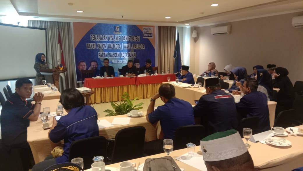 “Sesudah selesai pelaksanaan Pemaparan Visi dan Misi Balon Wako dan Wawako Dumai 2021 – 2026, segera kita lanjutkan ke sidang pleno internal di DPD NasDem Dumai dan sebelum diserahkan kepada DPW, terus nantinya akan diputuskan oleh DPP NasDem,†pungkasnya.