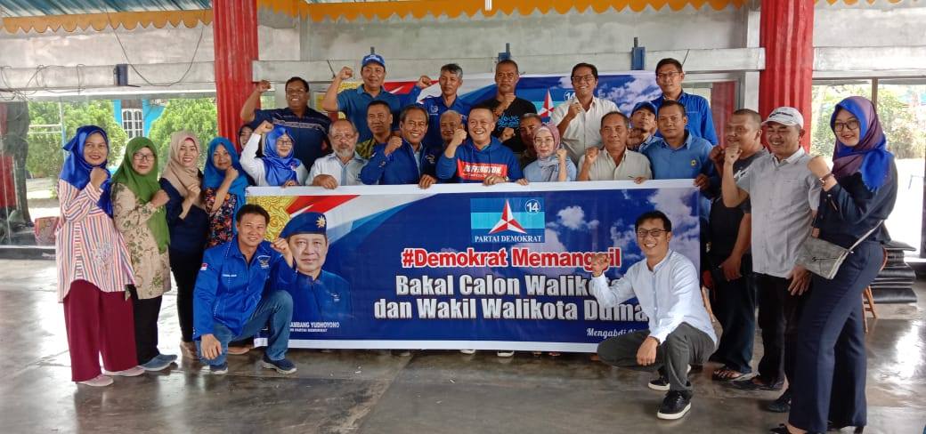 Terlihat rombongan Demokrat Dumai yang menghadiri pendaftaran, Ketua Tim 14 Daulat Indra beserta Sekretaris Afrianto Kurniawan dan Sekretaris DPC Demokrat Dumai Haryadi Suparlan.