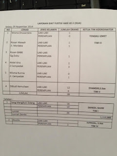 Laporan Giat Yustisi yang dibagi 6 titik yang menjadi target operasi yakni 5 titik, di Wisma D’Nusantara, kosan Mewah Jalan Merdeka, Kos Kosan Babe Gang Duku, Hotel Aira Jalan Cempadak dan Wisma Kurnia Jalan Pepaya yang dikoordinator oleh Tengku Izmet.