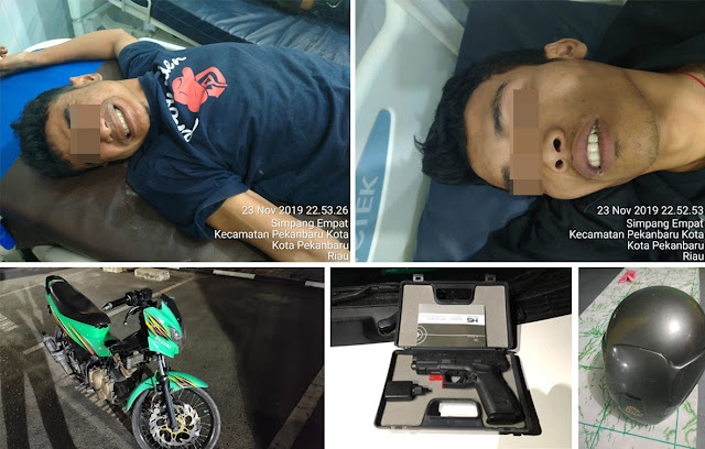 Beruntung, tidak tempo lama, unit Resmob Polda Riau berhasil meringkus pelaku yang berjumlah dua orang itu pada Sabtu 23 November 2019. Kedua pelaku berinisial MA (23) warga Kecamatan Naga Juang, Kabupaten Mandailing Natal (Madina) Provinsi Sumut dan PL (23) warga Penyabungan Simpang Ambat, Kecamatan Siabu, Kabupaten Mandailing Natal (Madina),