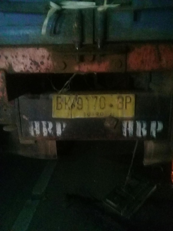 Mobil muatan yang bernomor BK 9170 BP berhenti ditengah jalan tersebut, diduga sedang mengalami kerusakan pada pompa angin tanpa meletakkan tanda segitiga pengaman.
