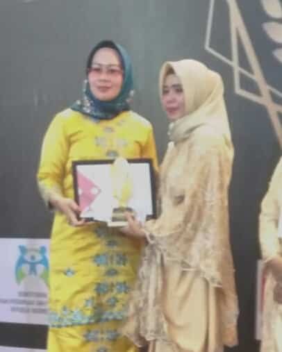 Istri Wakil Walikota Dumai, Dewi Tanjung Sari Suharjo yang daulat sebagai Bunda Pemeharti Anak Kebutuhan Khusus ini berikan penghargaan kepada Tri Mirza Susanti yang terpilih kepada tokoh yang sudah mendedikasikan kepada anak anak yang berkebutuhan khusus di Kota Dumai.