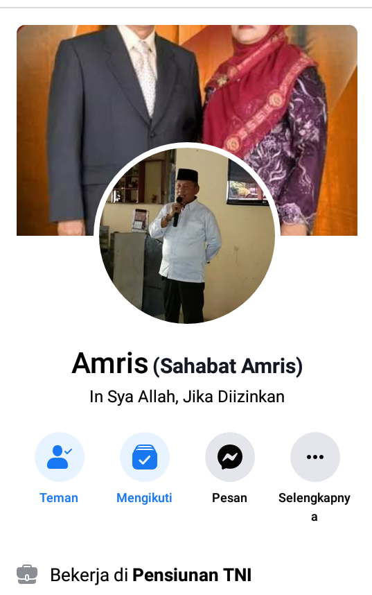 Pensiunan TNI AD dan Anggota DPRD Dumai 2009-2014 yang biasa akrab disapa Uwo Amris ini telah melakukan informasi dan klarifikasi terkait adanya akun FB pribadinya agar kepada rekan rekannyan untuk dapat berhati hati.