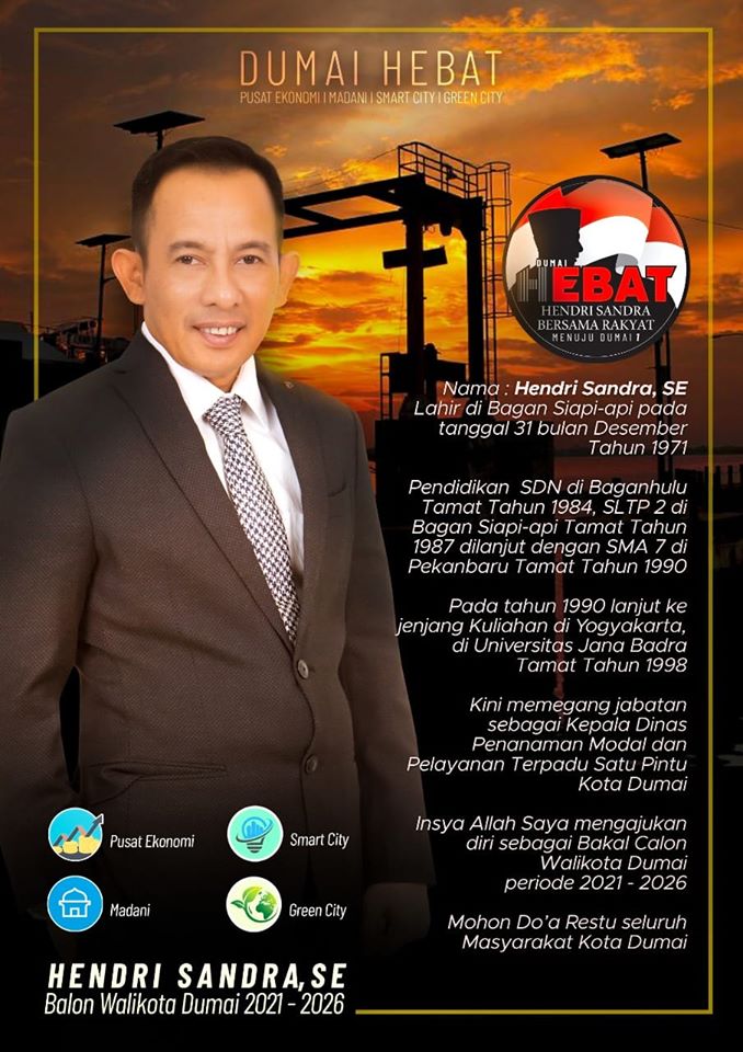 “Saya ingin maju sebagai Calon Walikota Dumai untuk masyarakat, apa salahnya kita langsung merealisasikan apa yang menjadi keinginan masyarakat,†pungkas Balon Wako Dumai yang piawai dalam bidang investasi.