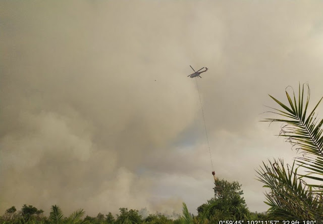 "Selain itu, langkah dukungan juga diberikan dari pihak swasta. Dimana 2 Heli Water Bombing Superpuma, dan 2 Alat Berat Arara Abadi APP Sinarmas Padamkan Karhuta 3 Kabupaten di Riau," ujarnya, Senin (02/03/2020).