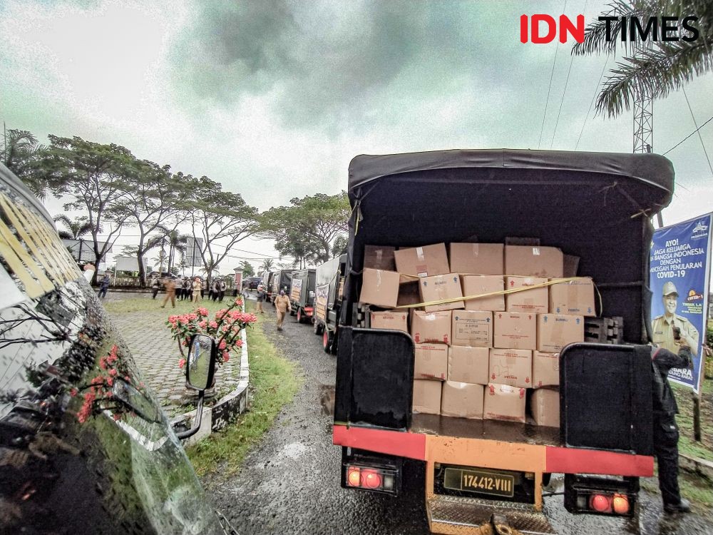 "Bantuan itu datang dari kecamatan ke desa sampainya magrib. Otomatis kami enggak memberikan langsung, diberikan ke waganya keesokan harinya. Kita juga tidak tahu isinya apa," kata Asep.