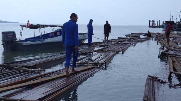 Tim menghentikan kapal pompong yang dinakhodai MJ dan S sebagai ABK. Pompong yang dibawa warga Desa Ketam Putih Kabupaten Bengkalis ini menarik 96 rakit.
