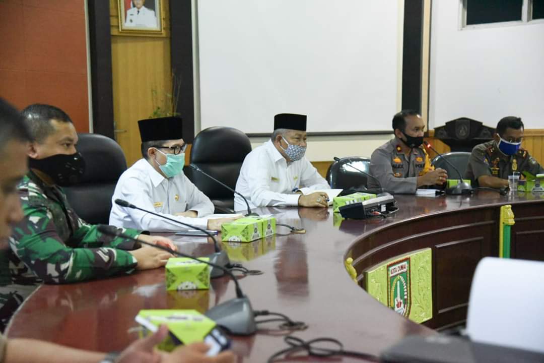 Dumai (PantauNews.co.id) - Walikota Dumai Zulkifli AS yang juga selaku Ketua Tim Gugus Tugas Percepatan Penanganan Covid-19 Kota Dumai menggelar rapat evaluasi mengenai pelaksanaan Pembatasan Sosial Berskala Besar (PSBB).