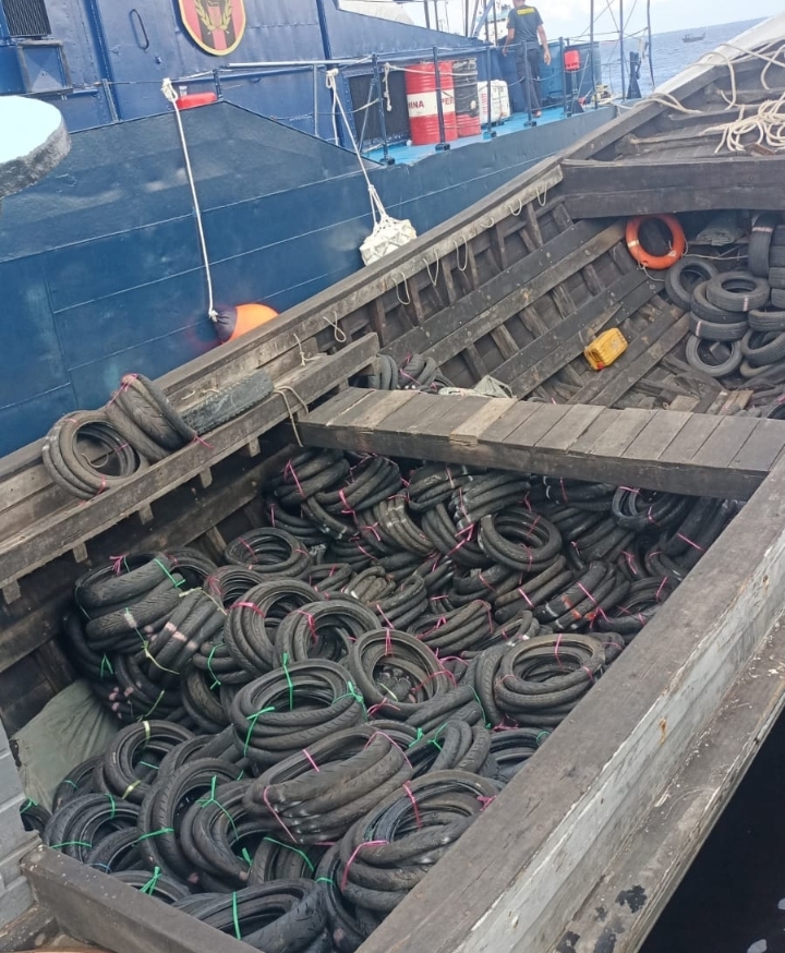 Penindakan dilakukan terhadap kapal KM Harapan Jaya yang berlayar dari Port Klang, Malaysia menuju Kubu, Rokan Hilir. Dari hasil pemeriksaan, petugas menemukan 3.750 unit ban bekas tanpa dokumen impor resmi. Barang tersebut diduga melanggar Pasal 102 huruf a Undang-Undang Nomor 17 Tahun 2006 jo. Pasal 55 ayat (1) ke-1 KUHP.