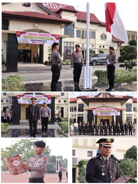 Bertindak sebagai Inspektur Upacara, Kapolres Rokan Hilir AKBP Isa Imam Syahroni, S.I.K., M.H. yang diwakili oleh Wakapolres Rokan Hilir KOMPOL Ricky Operiadi, S.Sos., S.I.K., M.I.K.. Adapun Perwira Upacara dijabat oleh AKP Yuliardi, S.H., dan Komandan Upacara oleh IPDA Azwar.